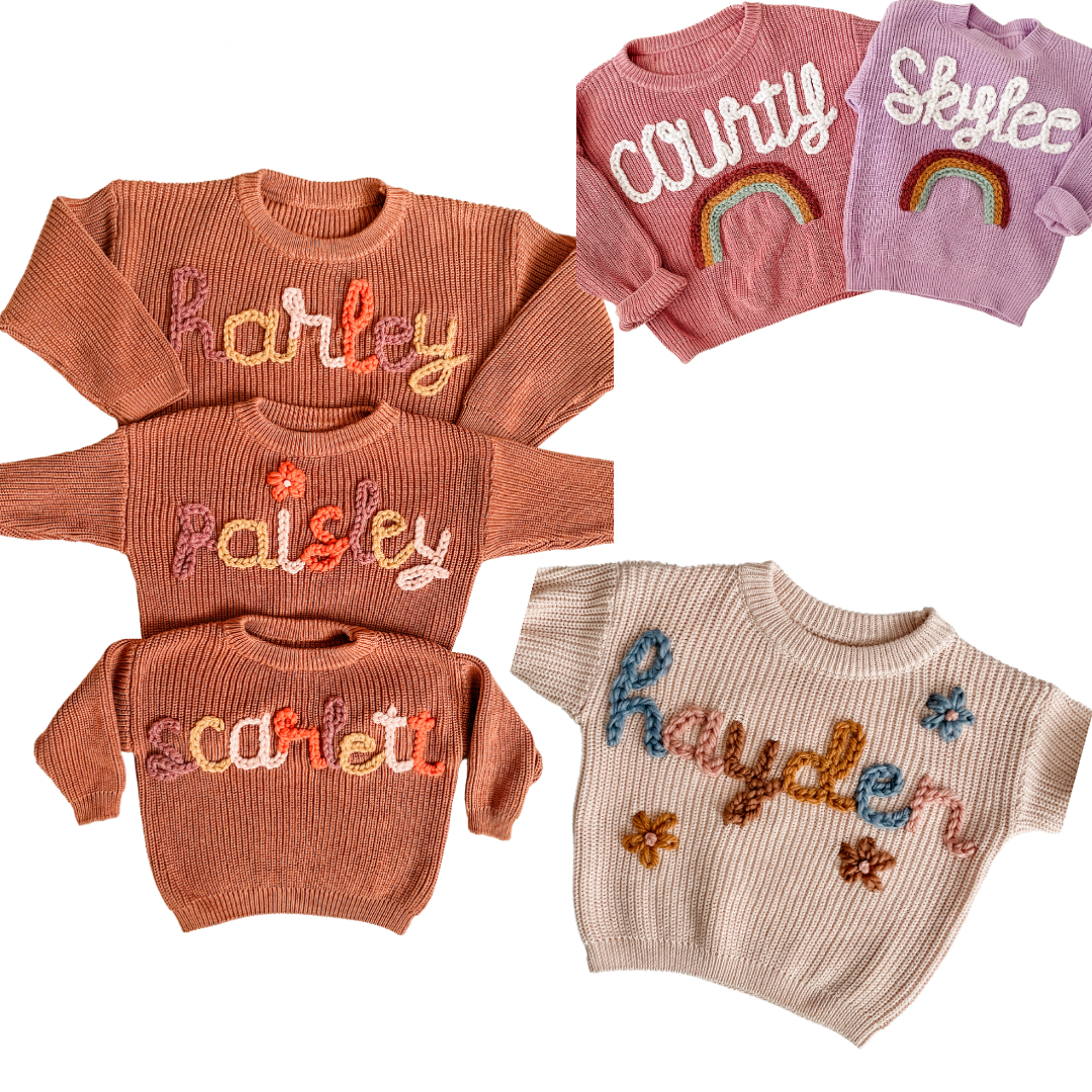 How adorable are these personalized baby and toddler sweaters?! Our hearts are captivated by the exquisite detail of these hand embroidered sweaters.