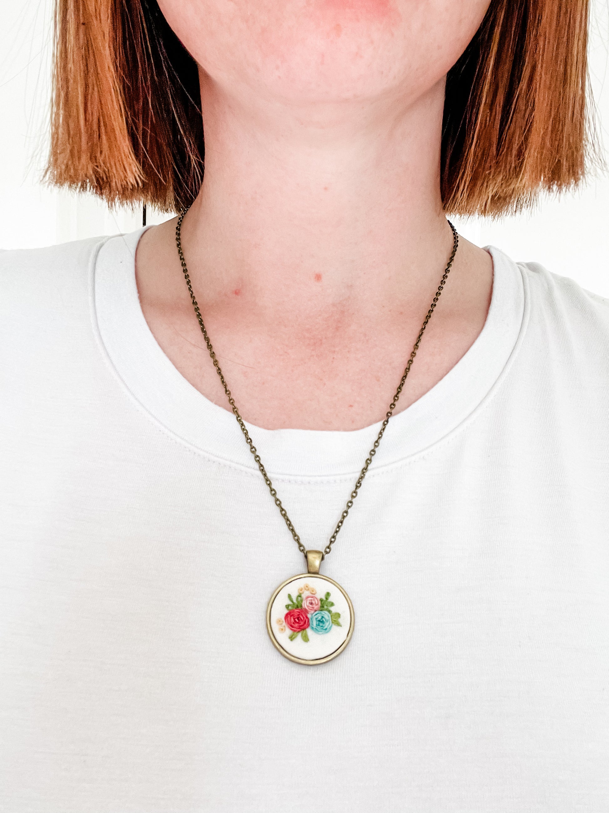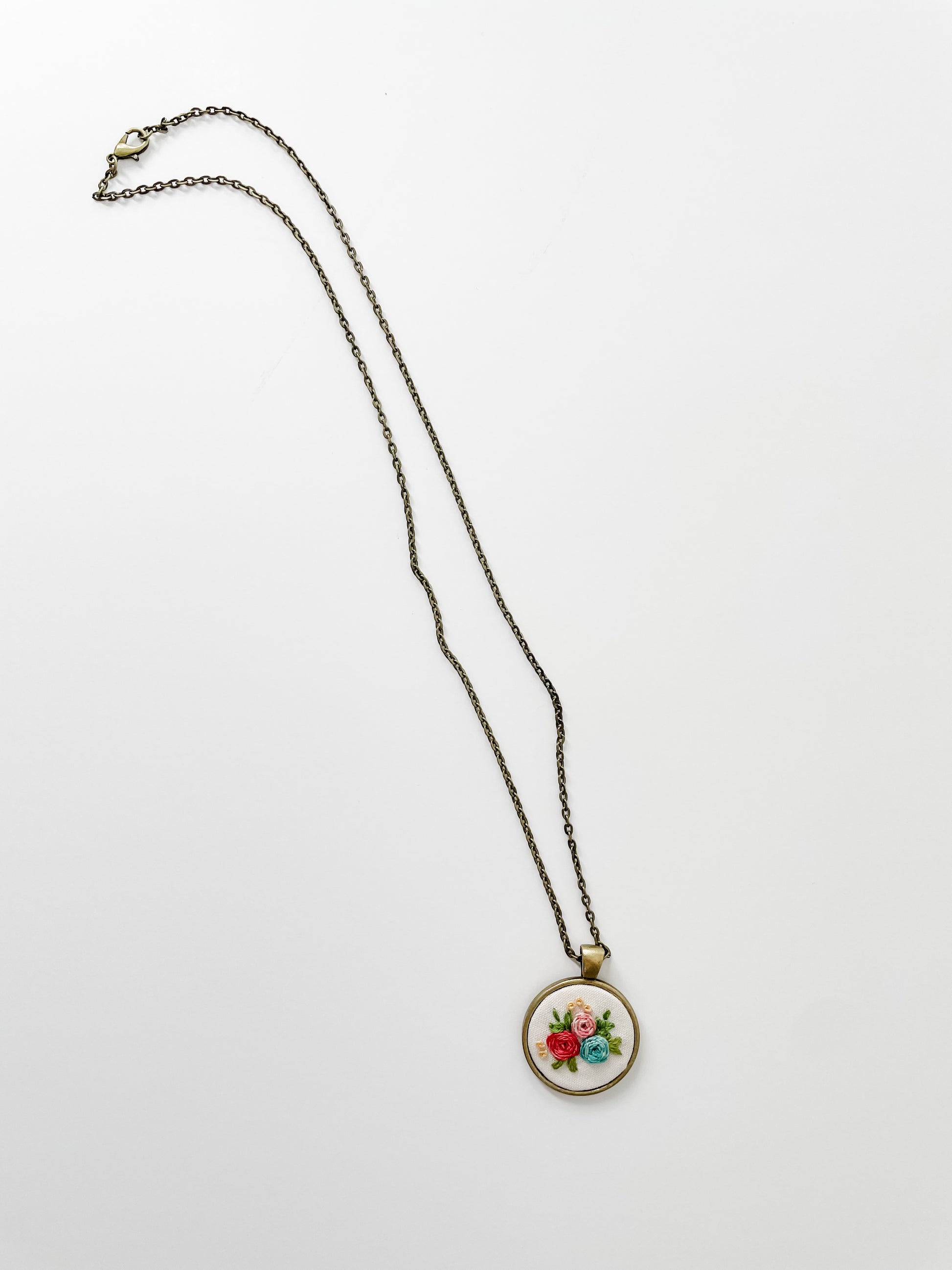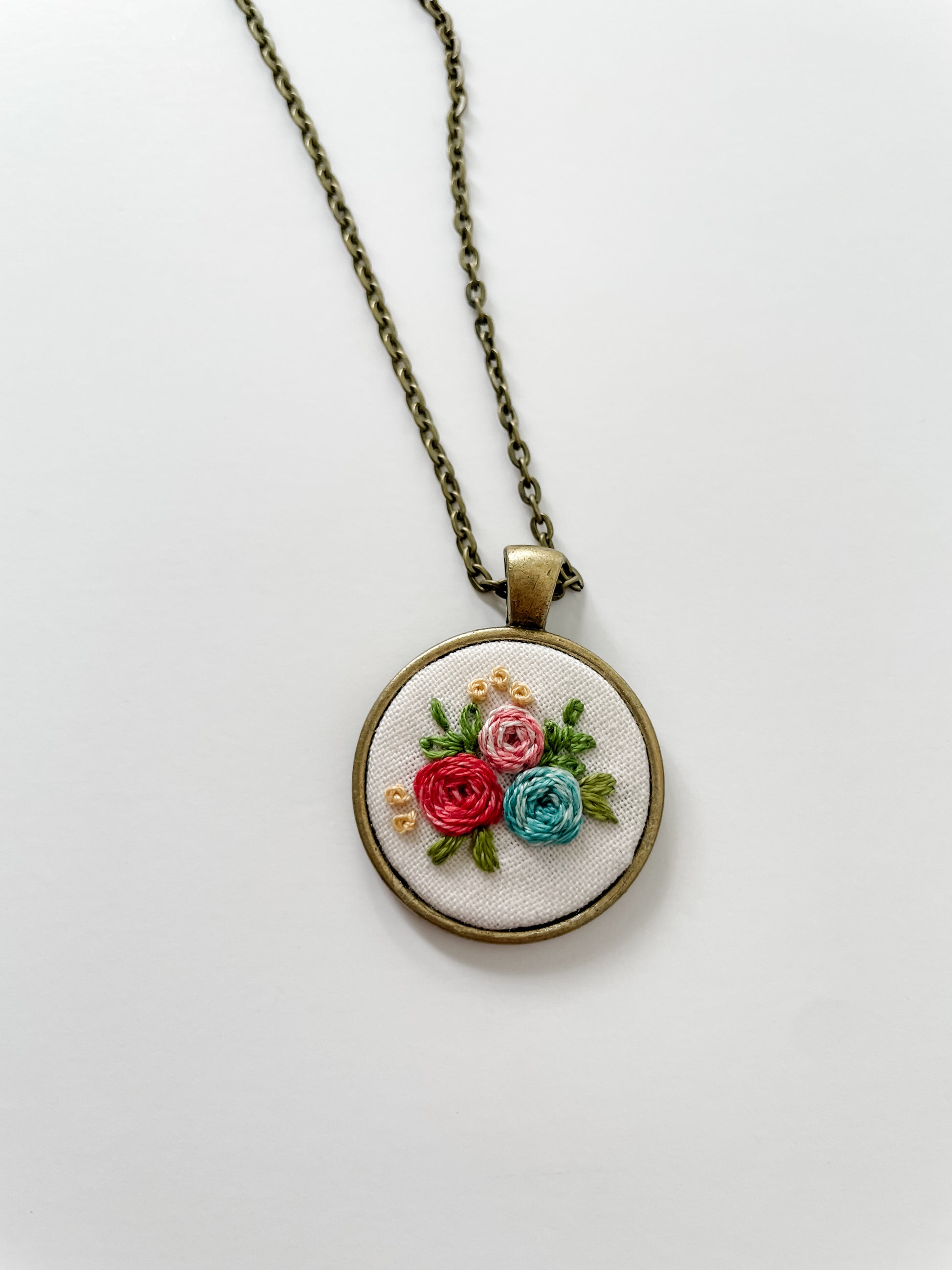 25 mm pendant on a 20 inch metal chain necklace. This item is handmade and unique, and as such any small imperfections are a part of its charm.