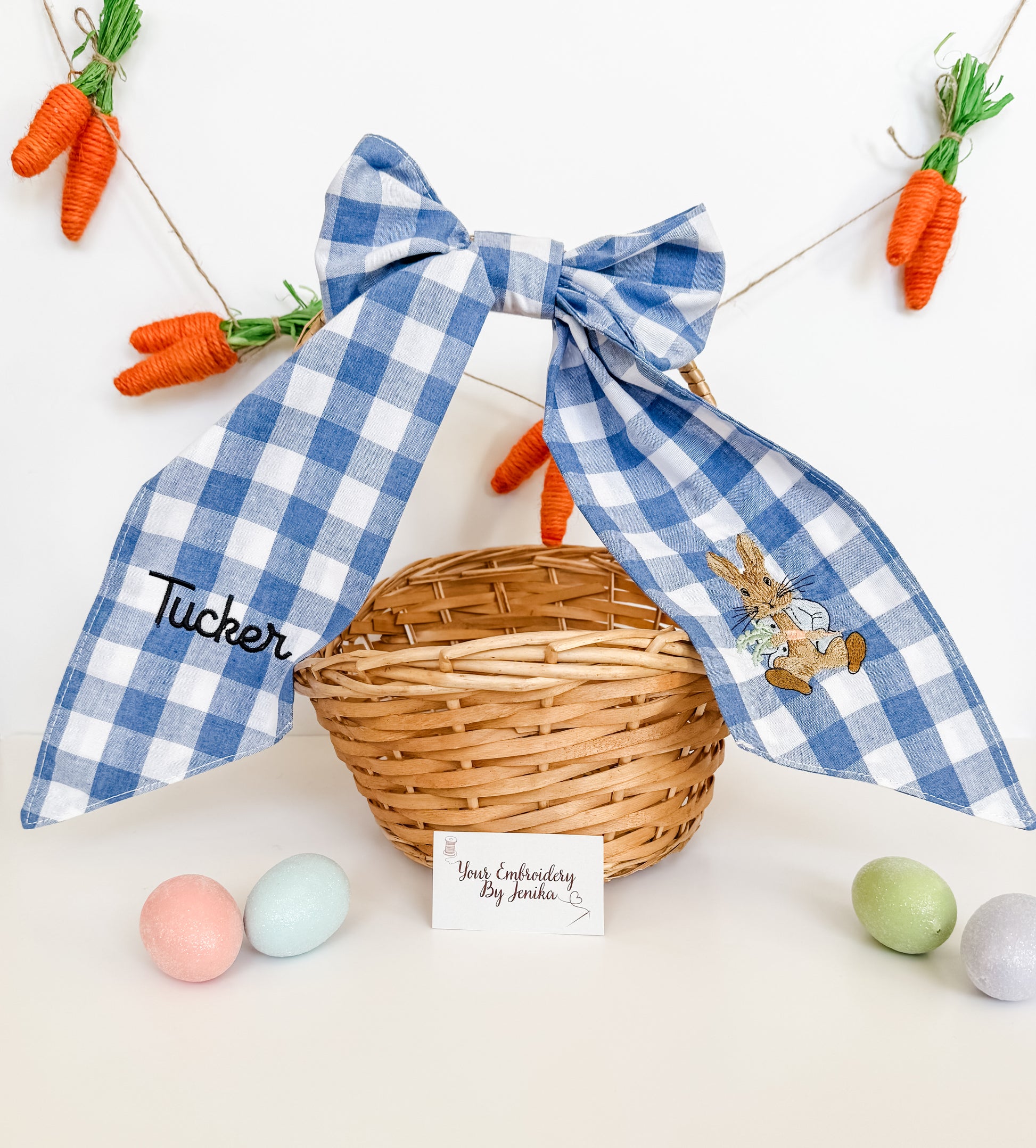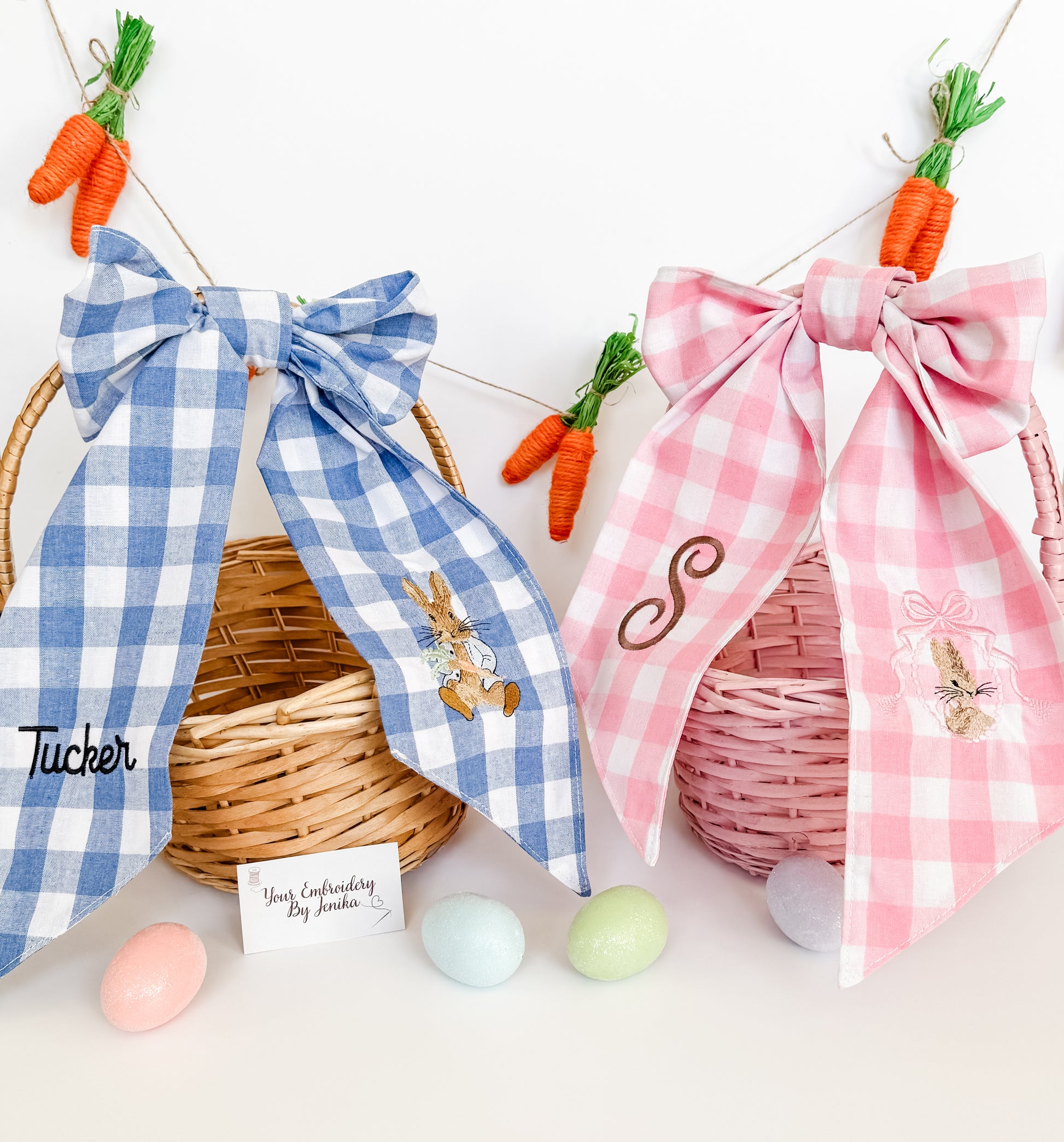 Personalized Gingham Bow Sash - The Perfect Easter Basket Accessory!