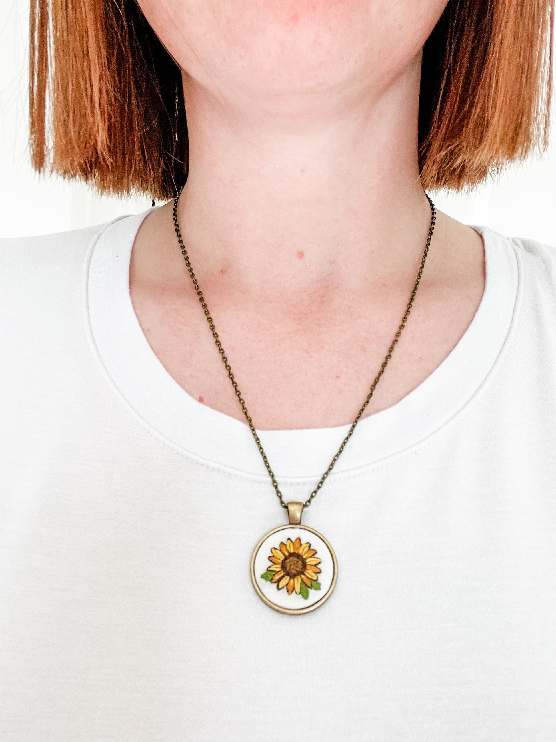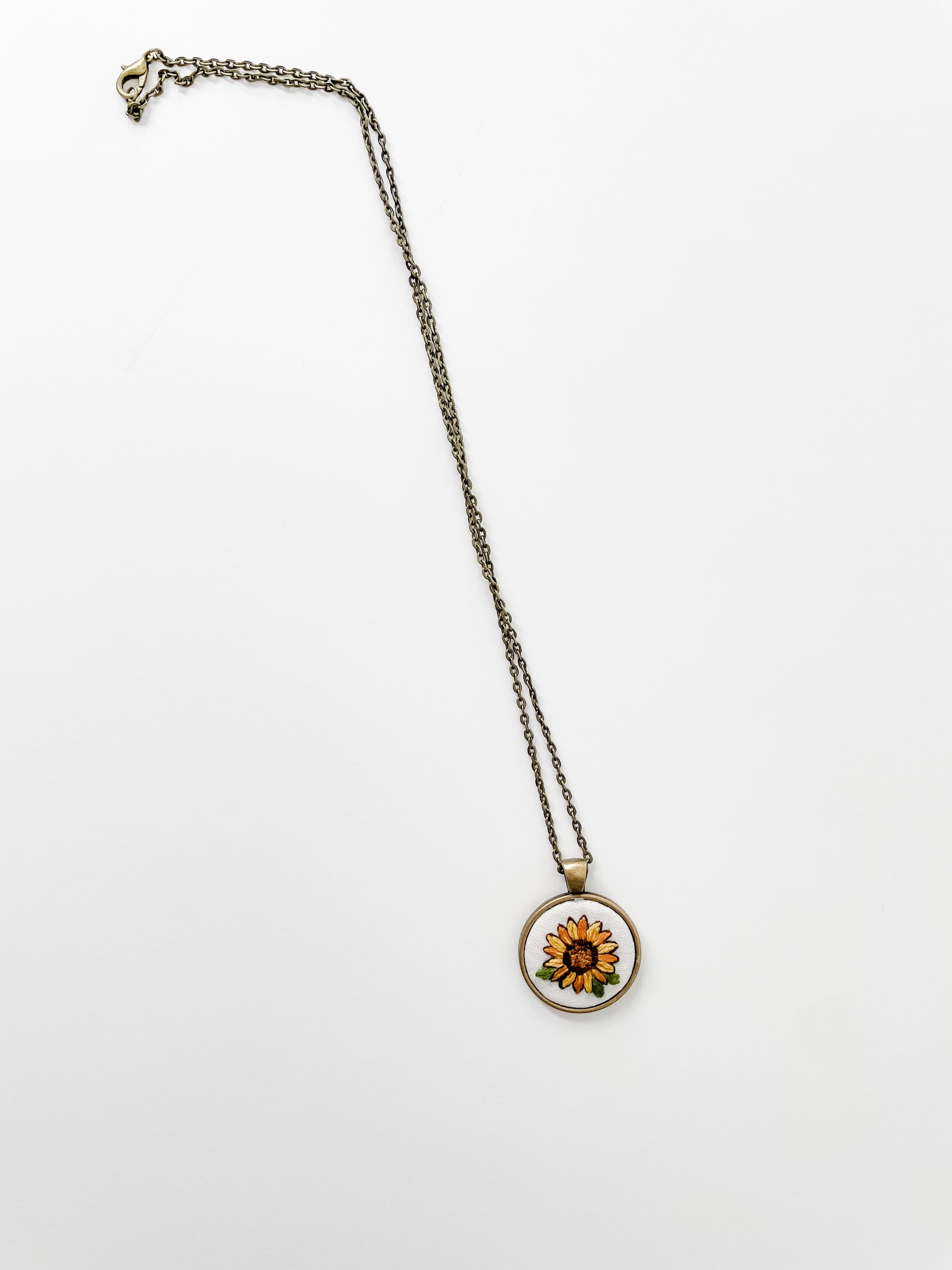 25 mm pendant on a 20 inch metal chain necklace. This item is handmade and unique, and as such any small imperfections are a part of its charm.